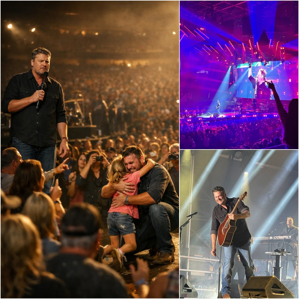 He didn’t scan the crowd of thousands screaming his name. He didn’t glance at the cameras hovering, waiting to capture another “iconic Blake moment.” He didn’t even look at the band, who stood ready behind him, fingers poised, waiting for the signal they had practiced a hundred times.
