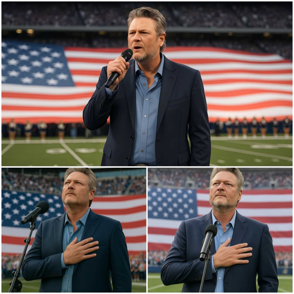 As Blake moved through the anthem, every phrase landed differently than anyone expected. It wasn’t flashy. It wasn’t dramatic. It wasn’t trying to impress.