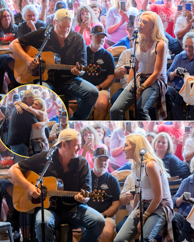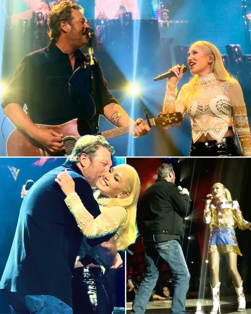 Because the second Blake Shelton stepped onto that stage, guitar slung loose over his shoulder, no one knew the storm that was about to unfold. Even fewer expected the moment Gwen Stefani appeared behind him — glowing, steady, eyes locked on his — and the entire room lost its breath.