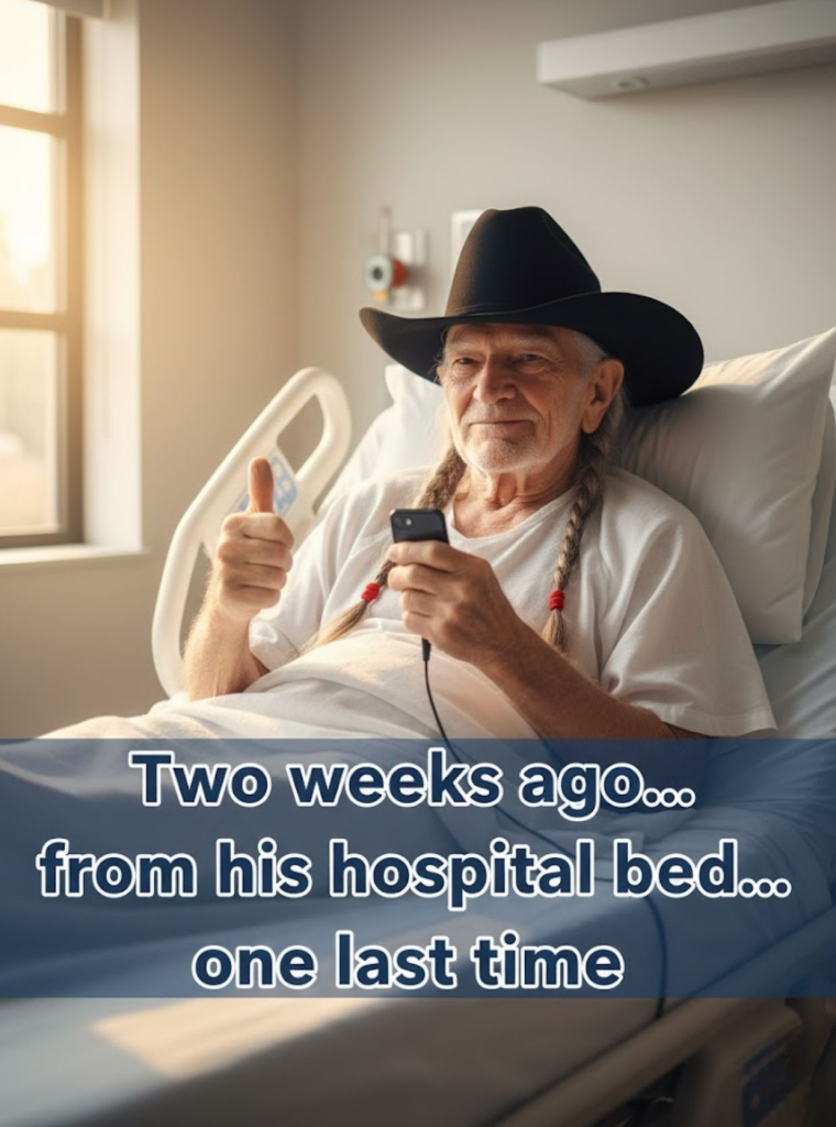 Nurses crying in the hallway. Family holding phones. Willie, tubes in his arm, whispered “One more for the road…” — then sang the song that defined his life. Recorded two weeks ago. Released this morning.