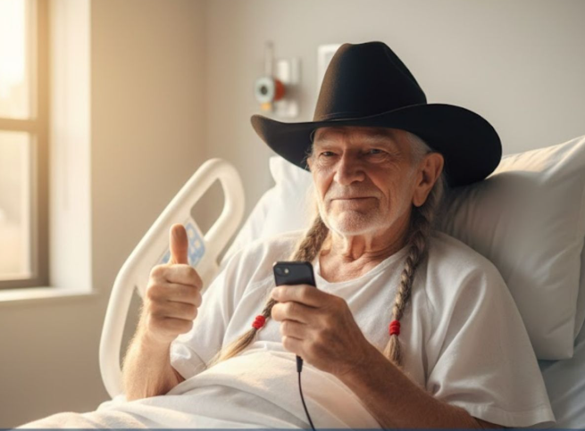 And Willie Nelson — even lying in a hospital bed, even with the world holding its breath — proved that he is still, in every way that matters, on the road again.
