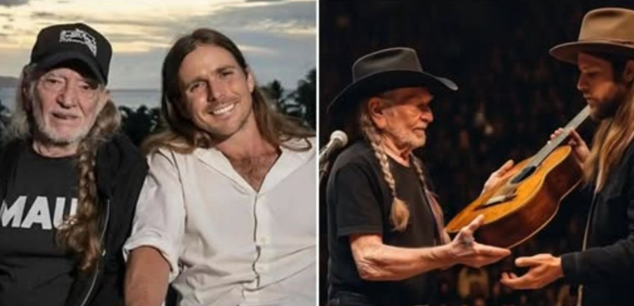 Then, in a gesture that seemed both ordinary and mythic, Willie lifted Trigger and placed it into his son’s trembling hands. It was the moment fans had dreamed of — the literal passing of the torch, the handing over of America’s most famous guitar.