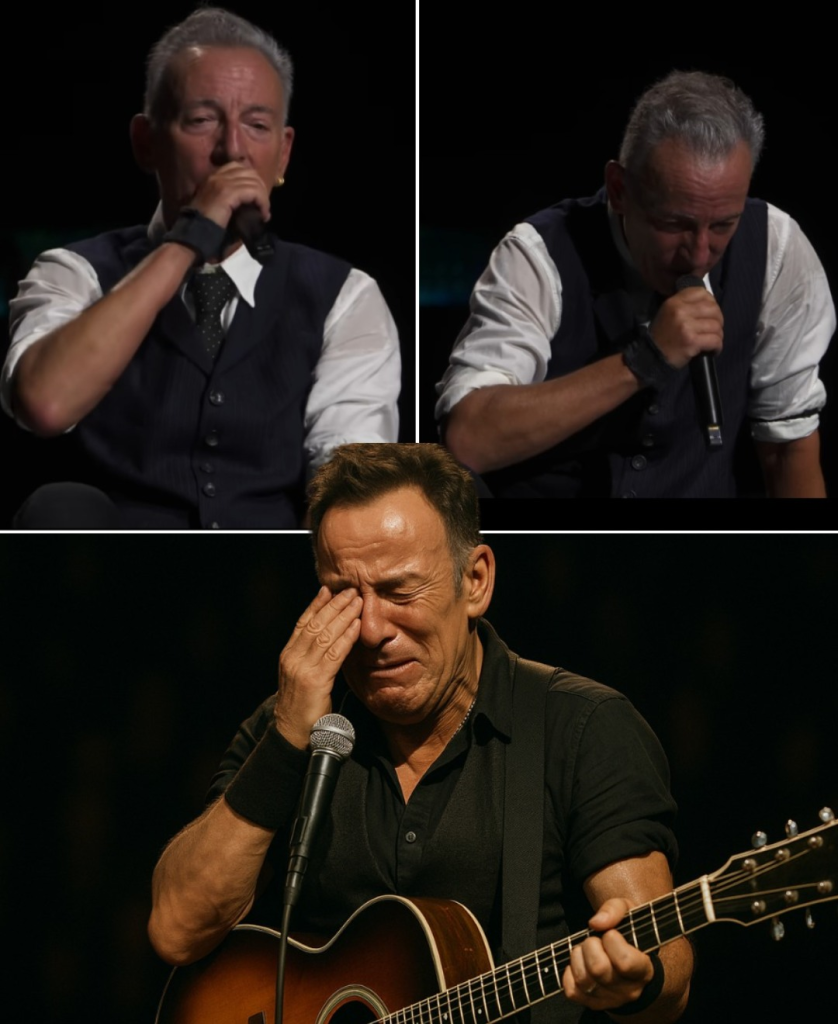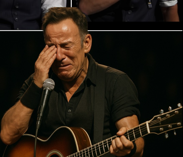 Bruce Springsteen, the man who’s spent half a century turning pain into poetry, stood center stage beneath a single beam of soft gold light. His guitar rested against his chest, his voice faltered for a moment, and then — he spoke.