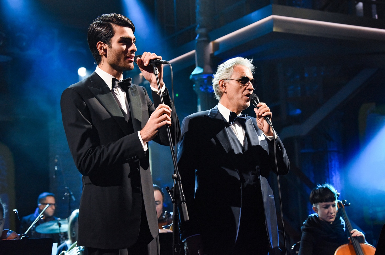 Within seconds, Matteo Bocelli — who had been waiting backstage — rushed toward his father.