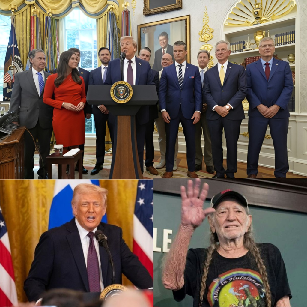 The room fell into warm laughter when Trump continued, “And let’s be honest — nobody else in the world could get away with those braids. They’re American history.” Nelson chuckled softly, giving the braids a small tug as if saying, Yeah, they’ve been through a lot.