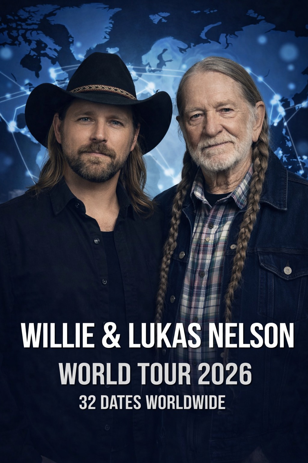 Willie Nelson and his son, Lukas Nelson, have officially unveiled the complete itinerary for their 2026 World Tour, a sweeping 32-stop journey spanning North America, Europe, and Australia. More than just a concert series, the tour is already being hailed as one of the most ambitious—and emotionally resonant—global undertakings of their careers. For fans, it represents something increasingly rare in modern music: a living lineage, shared onstage in real time.