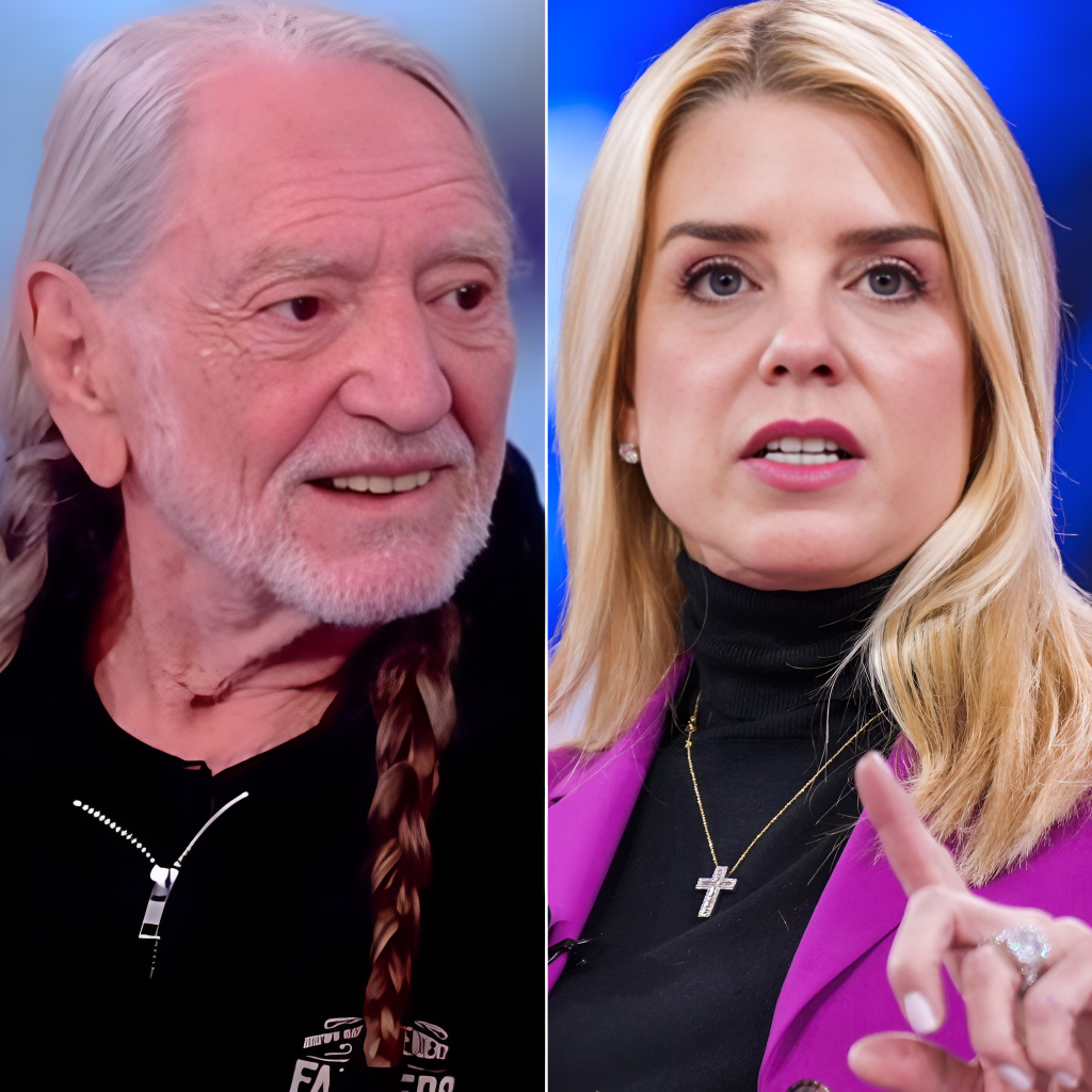 On one side sat Willie Nelson, 92 years old, his posture relaxed, his face carrying the calm of someone who has lived through more storms than most people can imagine. On the other was Pam Bondi, composed and precise, her words sharpened by years in courtrooms and public office.