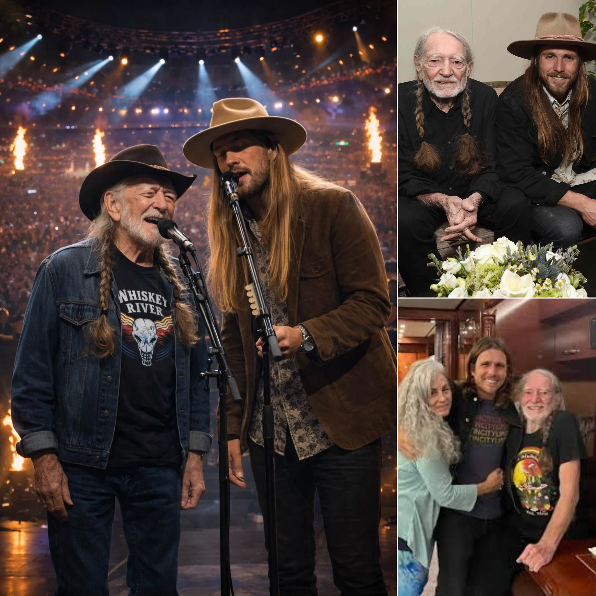 On a night that will be spoken about in whispers, replays, and reverent memories for decades to come, Willie Nelson stepped onto the stage beside his son, Lukas Nelson, delivering a moment so raw, so unguarded, that it felt less like a performance and more like a living memory unfolding in real time.
