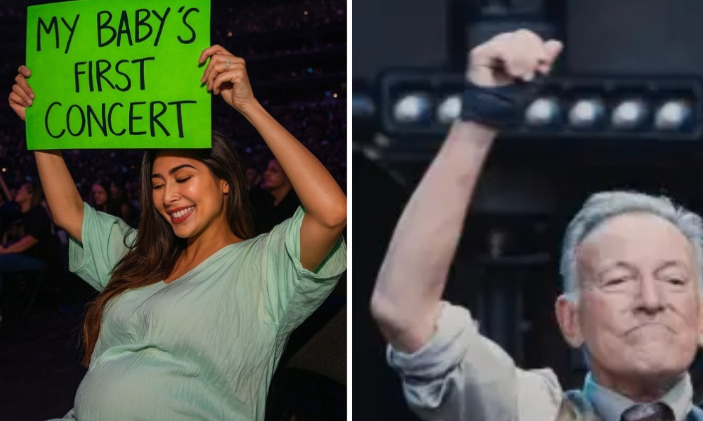 “I almost didn’t go,” she said, laughing through tears. “But my husband said, ‘It’s Bruce. The baby’s got to hear The Boss at least once before she’s born.’ So we went. I made the sign just for fun — I never imagined he’d see it.”